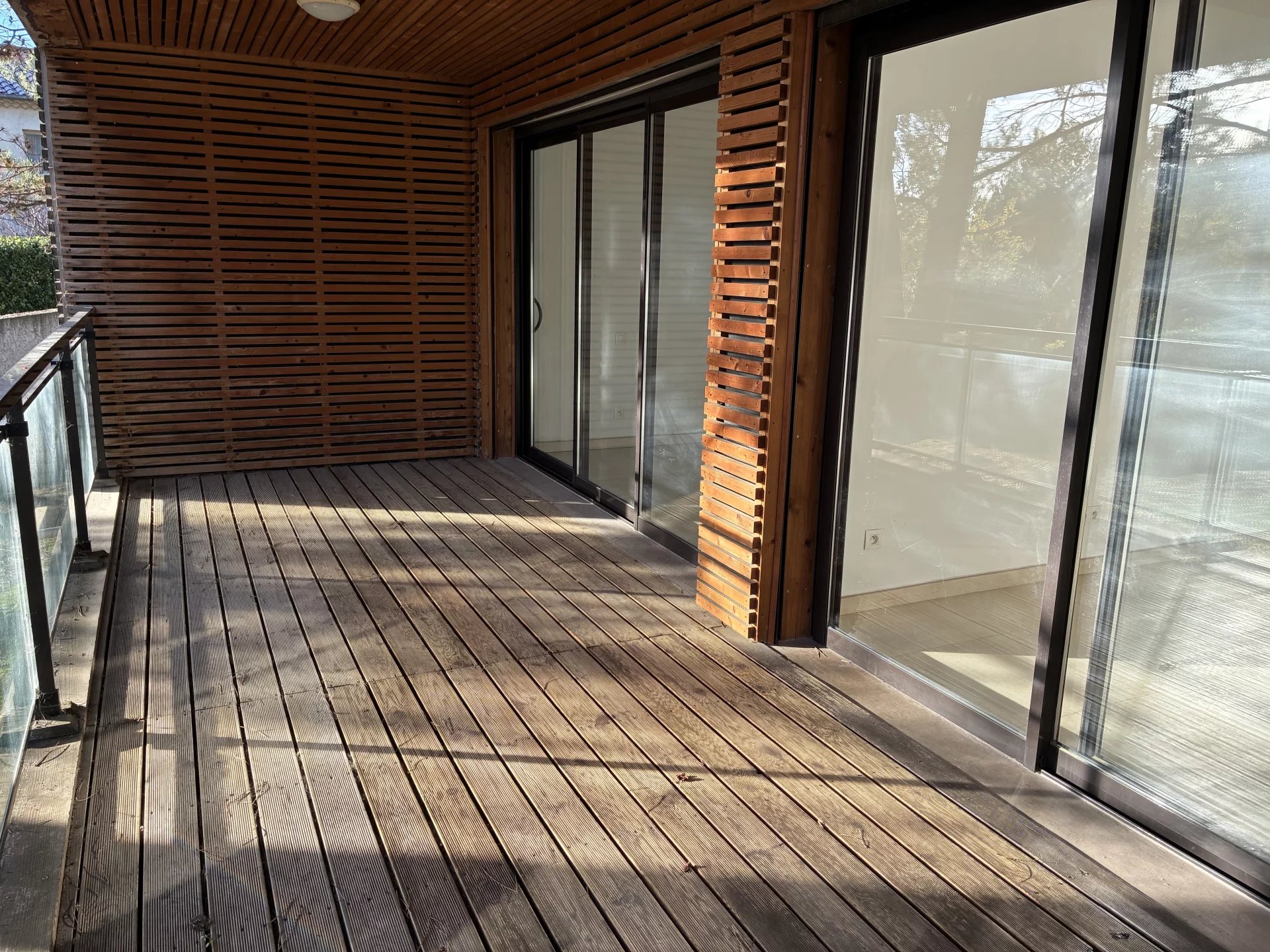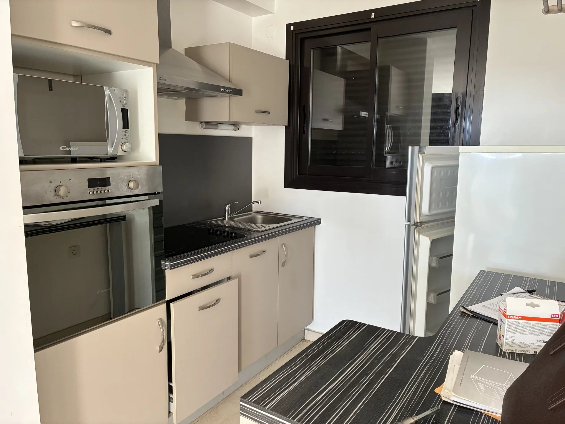 Venelles, dans une résidence sécurisée récente au calme avec piscine, appartement de type 2 avec terrasse, en bon état, climatisation, parking privé et garage fermé.